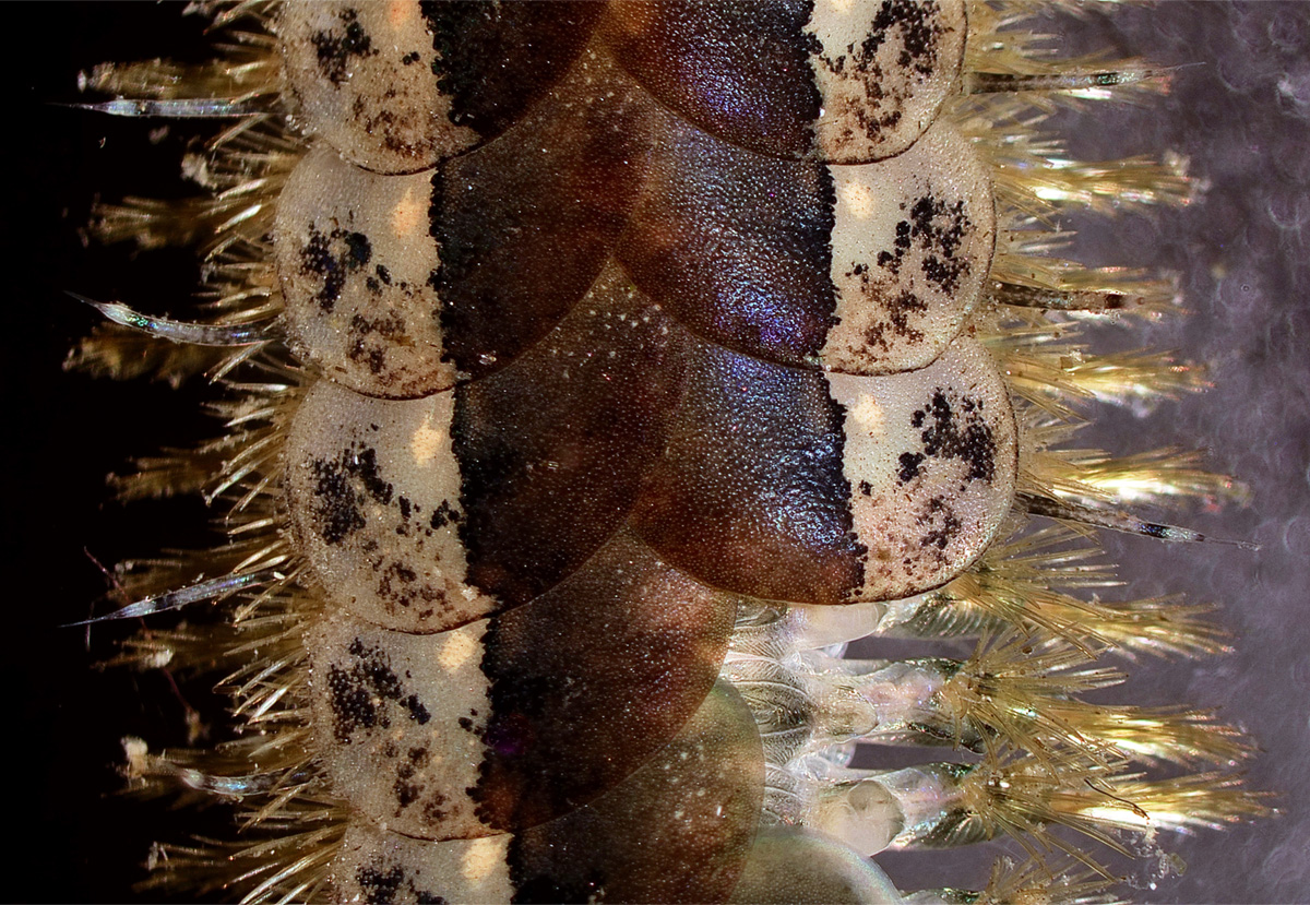 • Fifteen-scaled worms are part of the class Polychaeta which means “many bristles”.